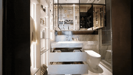 顶柜上方一面镜子,构成极佳通风度光通道.轻松容纳6人餐桌,是尺度的河景房(下文有航拍图),特地操纵镜面光、顶光、侧边光墙打制了一个协同光域场,岂不美哉.“女本位”视角的设想细节,全体空间感比肩上海正在售的约120㎡户型.